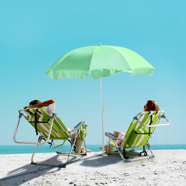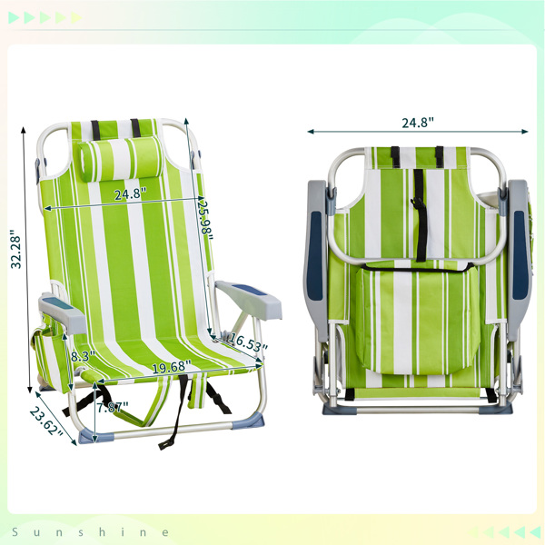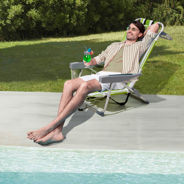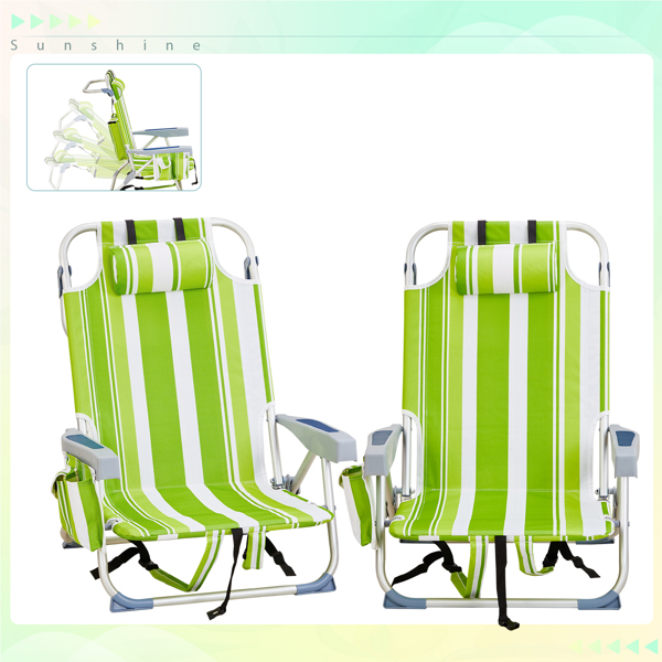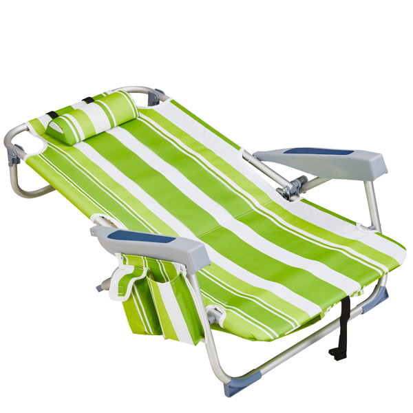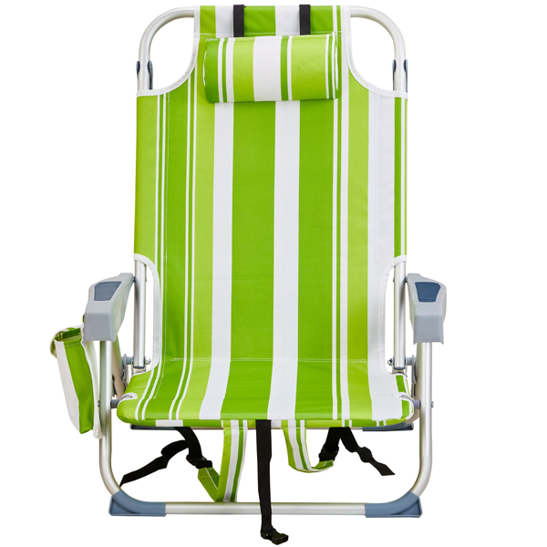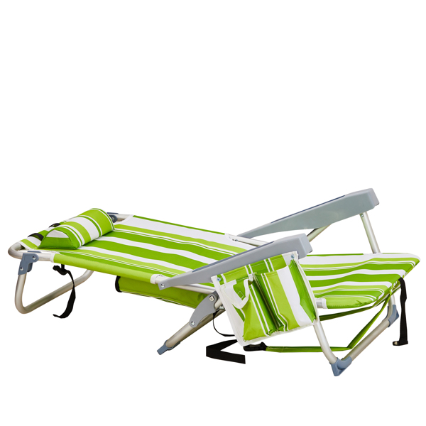Get comfortable with this Folding beach Chair. It is an ideal solution for sitting and relaxing in comfort during outdoor activities. It is also a must-have for a sporting event, a picnic, a camping trip or even just to the backyard. The aluminum frame is not only light-weight, but also offers even greater sturdiness and stability to make it stand up to various conditions. In addition, the adjustable back with 5 positions to create better sitting feeling, and the extra storage space such as pouches on the back and side cup holder allow you to keeps the necessities right by your side. The beach chair is light-weight and easy to move so that it fits easily inside most vehicles for fast transport wherever you need.