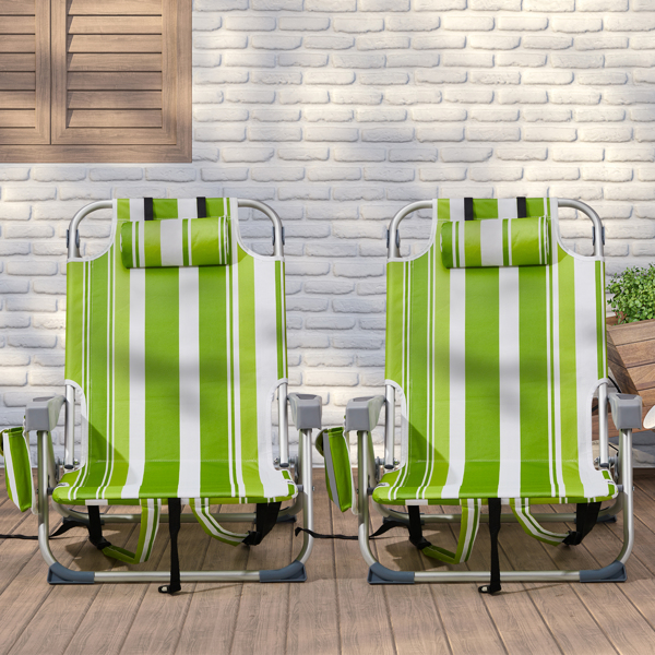 63x65x82cm Short Oxford Cloth Silver White Aluminum Tube Bearing Beach Chair Green Stripes