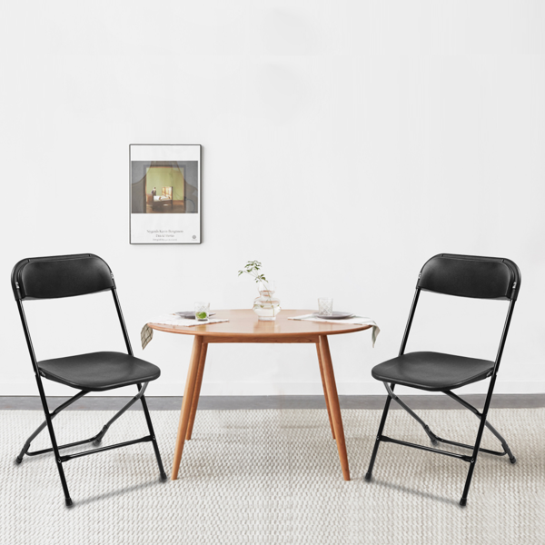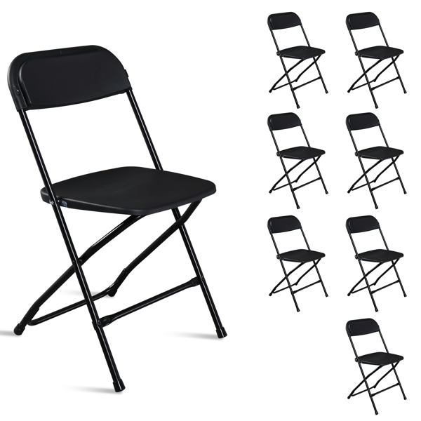 Plastic folding chairs are ideal for gathering, parties, home, offices, churches, schools, picnic. They won't get mouldy for heavy-duty plastic material and metal material with powder coating. Chairs could allow 350 lbs capacity with upgrade on tube and metal thickness. Plastic chairs are lightweight, so we could move them effortless.