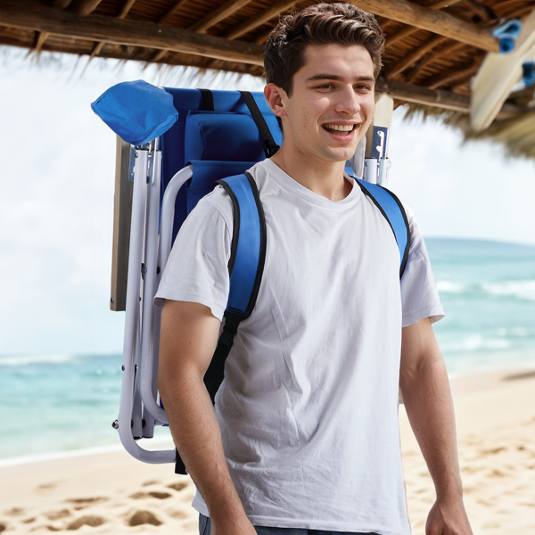 Discover the ultimate in outdoor relaxation with our Folding Beach Chair, designed to enhance your beach days, camping trips, and backyard lounging. This portable chair combines the convenience of a backpack with the comfort of a luxury seat. Featuring a versatile four-position recline, it lets you adjust from an upright posture to a more relaxed angle with ease. Whether you're soaking up the sun by the sea or enjoying a concert under the stars, this chair is your perfect companion for any outdoor activity.